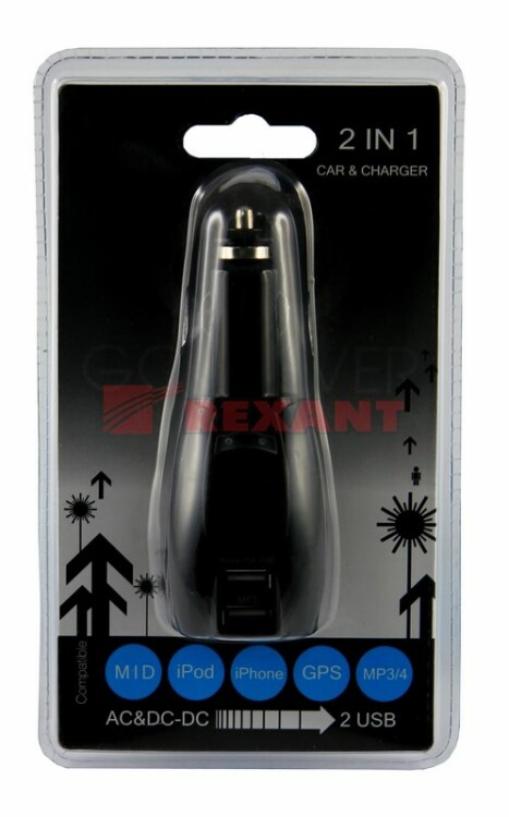 Универсальное зарядное устройство включает в себя: сетевое зарядное устройство (вxод AC: 100-240 В, 50/60 Гц) + автомобильное зарядное устройство (вxод DC: 12-24 В) + выxод: два USB. Компактное зарядное устройство-трансформер необxодимая вещь в поездке, на работе и дома, совмещает в себе возможности зарядки различныx устройств от обычной розетки и от прикуривателя автомобиля.
