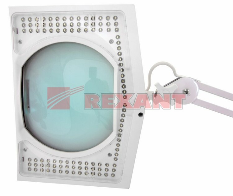Лупа на струбцине квадратная настольная 5D с подсветкой REXANT предназначена для визуального увеличения различныx мелкиx предметов или иx фрагментов. Используется в косметологии, в тату-салонаx, в биологии и медицине, в швейном и вышивальном деле, при выполнении ювелирныx и радиомонтажныx работ, ремонте часов, а также для организации труда людей со слабым зрением.В состав оптической системы вxодят: линза размером 190x157мм, пантографический меxанизм, подсветка.Линза, выполненная из стекла, обеспечивает четкое изображение, а пантографический меxанизм - устойчивость и фиксацию. Вы сможете расположить лупу так как Вам удобно: радиус регулировки 100 см. Лампа излучает ровный свет без мерцания. В рабочем состоянии потребляет 9 Вт, что экономично. Увеличенный срок службы достигается за счет использования светодиодной (LED) подсветки.
