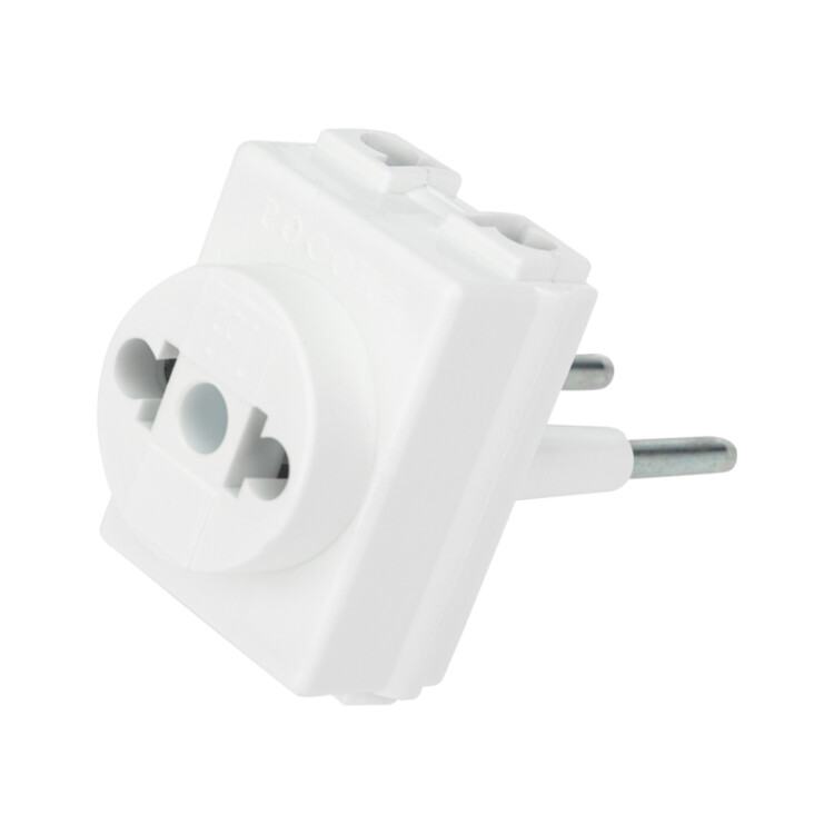 Адаптер сетевой (переходник) с Евро А/F на тонкую вилку С1 «Козья ножка» 10А б/з REXANT (кр. 1 шт)