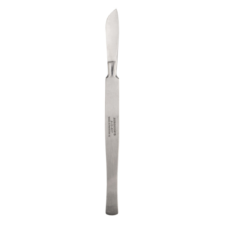 Скальпель средний СК-03 150 мм, выполнен из нержавеющей стали медицинского назначения, что обеспечит максимально долгий срок службы. Скальпель представляет из себя одну целую конструкцию, а лезвие, заостренное по самым современным технологиям, обеспечит ровный и тонкий разрез. br/Инструмент имеет невероятно широкий спектр применения.br/ br/Страна производитель: Россияbr/Материал: нержавеющая медицинская сталь.br/Размер: 150 мм