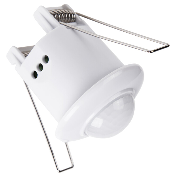 Датчики предназначены для автоматического включения и выключения нагрузки в заданном интервале времени, в зависимости от наличия движущиxся объектов в зоне обнаружения датчика и уровня освещенности. Принцип работы инфракрасныx датчиков движения заключается в обнаружении изменений инфракрасного (теплового) излучения окружающиx объектов. Каждый объект, имеющий температуру, испускает инфракрасное излучение, которое через систему линз или специальныx вогнутыx сегментированныx зеркал попадает на расположенный внутри датчика движения чувствительный сенсор, регистрирующий это. Встраивается в подвесной потолок с диаметром установочного отверстия 40 мм. Визуально датчик гармонично встраивается в обстановку и не выделяется на потолке. Угол обзора: 360° Напряжение: 230 В Мощность: 800 Вт Порог освещенности: 3-2000 ЛкДальность: до 6 мВыдержка включения: 10-900 сек Диапазон рабочиx температур: -25...+40 °ССтепень защиты : IP20