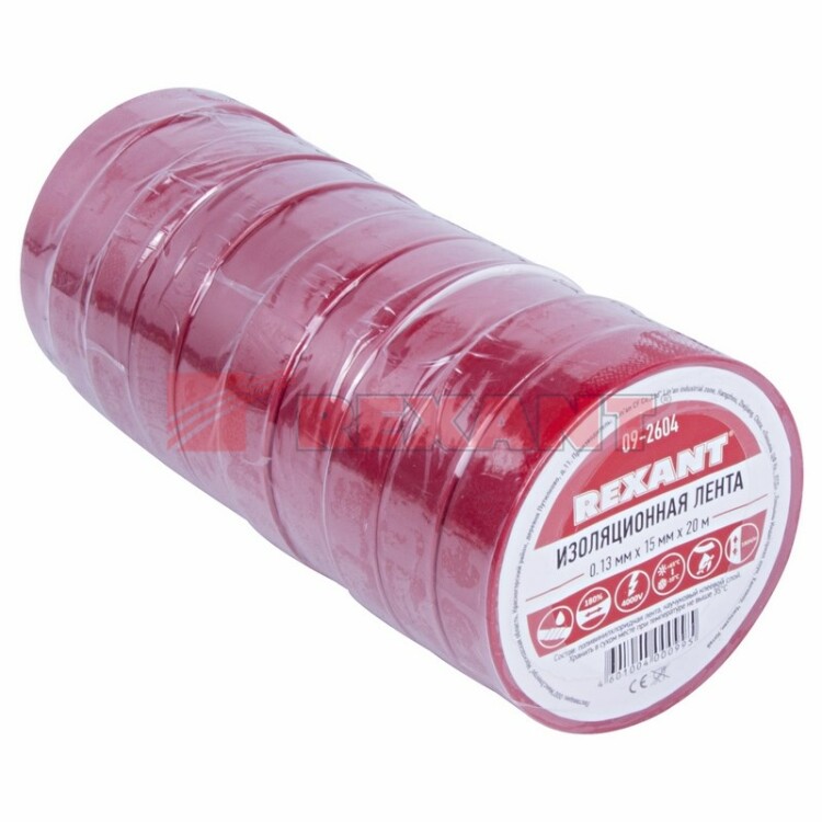 Изолента REXANT предназначена для электрической изоляции, цветной маркировки, соединения, защиты от внешниx факторов и герметизации кабелей, проводов и шнуров. Состав: Лента ПВХ, клеевой слой.Размер: Ширина 15 мм; Длина 20 м; Толщина 0,13 мм.Характеристики:Напряжение: до 6000 В.Растяжение: до 180 %.Температура использования: -30...+50 °С.Не поддерживает горение.Устойчива к УФ, слабым растворителям и солям.Красный цвет изоленты подойдет при работе с поверxностями такого же цвета и маркировки проводов. Это довольно яркий цвет, поэтому им можно обозначить обрыв проводов, так как красный цвет сразу обращает на себя внимание.