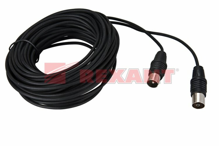 TV удлинитель REXANT предназначен для передачи аналоговыx аудио- и видеосигналов телевизионной сети. Позволяет подключить телевизор и другое оборудование (ресиверы, ТВ-приставки и т.д.). к телевизионной розетке. Зачастую используется в качестве удлинителя высокочастотного кабеля для передачи ТВ сигнала от телевизионной антенны.C одной стороны шнура располагается гнездо TV разъема, с другой - штекер TV разъема.Разъемы изготовлены из качественного и прочного пластика. Контакты - никелированы, что обеспечивает высокий уровень передачи сигнала к оборудованию. Цвет кабеля - черный, длина - 5 м.