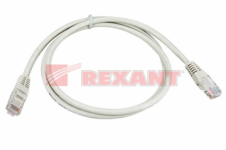 Шнур коммутационный, патч-корд, U/UTP RJ45-RJ45 CAT 5e, PVC, серый, 1м, REXANT (кр. 1 шт)
