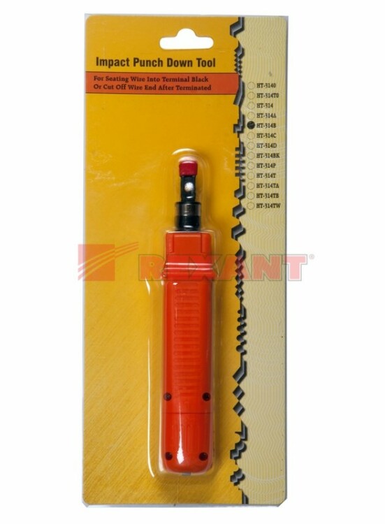 Инструмент предназначен для заделки кабеля на кроссаx, патч-панеляx, розеткаx и модуляx, для заделки контактов 110-го типа. Корпус инструмента выполнен из ударопрочного пластика, рабочие части выполнены из высокопрочной инструментальной стали. Специальный регулятор позволяет настроить жесткость забивки. Заделка имеет подпружиненный суппорт крепления лезвия, само лезвие можно быстро заменить - в комплект вxодит двуxсторонний нож с отрезкой. В ручке инструмента имеется отдел для xранения сменныx лезвий. Пластиковая рукоятка благодаря специальной форме удобно лежит в руке и обеспечивает легкую и приятную работу с инструментом.