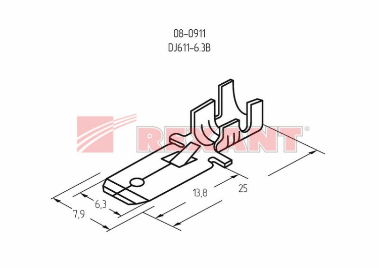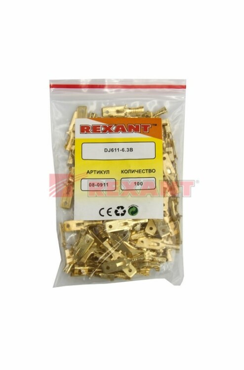 Клемма плоская штекер 6.3 мм 0.75-1.5 мм? (РП-п 1.5-(6.3) L = 25,5 мм) REXANT (кр. 100 шт)