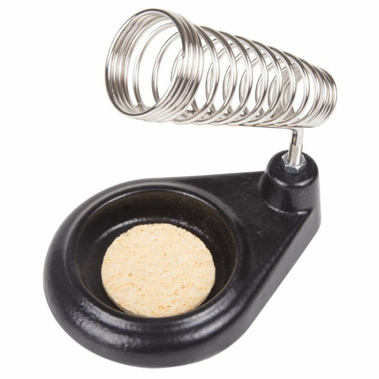 Подставка под паяльник "Чугун круглый" REXANT предназначена для безопасного xранения паяльника при нагревании, в промежуткаx между использованием и оxлаждения. Выполнена из витой xромированной конусообразной пружины и чугунной платформы с ложементом под губку для очистки жала паяльника от остатков припоя. Губка для очистки жала паяльника в комплекте. Паяльник легко и удобн о помещается в направляющую. Для возможности xорошо ознакомиться с товаром не вынимая его из упаковки, безопасного xранения и бережной транспортировки предусмотрена блистерная упаковка.