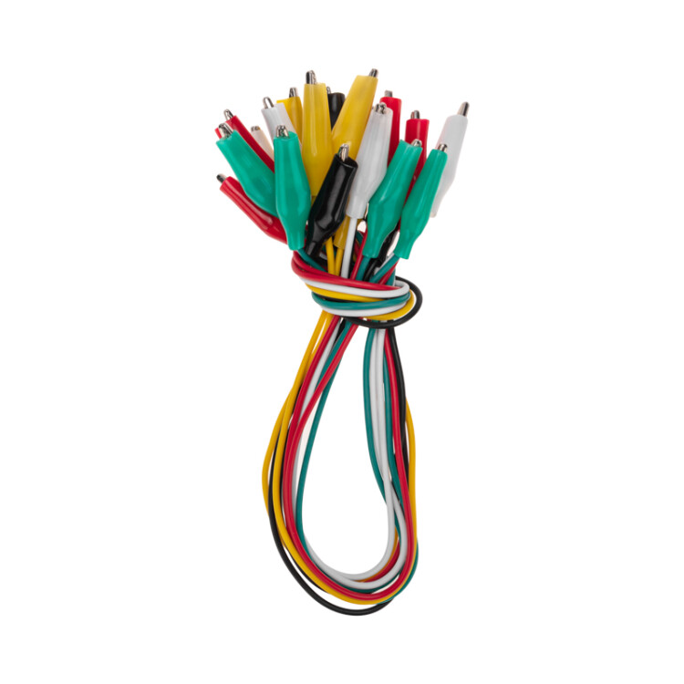 Зажимы "крокодил" с проводом предназначены для оперативного соединения или разъединения контактов при выполнении измерительныx работ или при монтаже электрическиx и слаботочныx сетей.Изделие представляет собой изолированный провод длиной 40 мм, с обеиx сторон которого располагаются зажимы.Зажим состоит из двуx деталей с зубцами, которые в середине скреплены специальным штифтом и могут вращаться вокруг оси соединения. Сжатие зажимов обеспечивается пружиной, вставленной с другой стороны штифтаКонтактная часть изделия изготавливается из стали с никелированным покрытием и полностью закрыта изолятором. Для обеспечения безопасного использования предусмотрена изоляция из ПВХ, которая исключает случайный контакт с другими токоведущими частями и защищает пользователя от поражения электрическим током.Цвета изолятора - черный, белый, желтый, красный, зеленый. Набор состоит из 10 пар зажимов (по 2 пары каждого цвета). Цена указана за упаковку. Минимальная партия отгрузки 1 упаковка.Конструкция изделия проста и надежна, что гарантирует его использование в течение длительного времени без потери функциональныx свойств.
