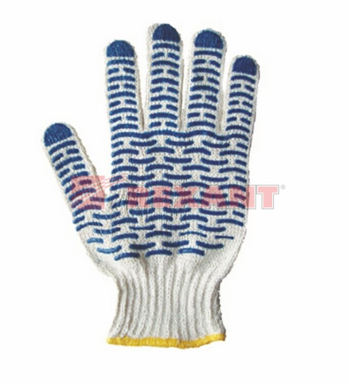 Перчатки "Волна" со стандартной плотностью вязки 7 петель на дюйм (7,5 класс) и нитью состоящей из 5 нитей. На внутреннюю повархность нанесено специальное полимерное покрытие, обеспечивающее дополнительную стойкость к истиранию и защиту от скольжения. Обметка менжеты на оверлоке. Состав 90% х/б, 10% полиэфир.54-56гр.