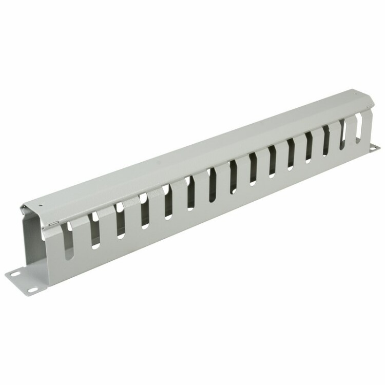 Горизонтальный кабельный органайзер 1U предназначен для более удобного и компактного размещения коммутационного кабеля.Кабельный органайзер изготовлен из цельнометаллической панели высотой 1U. На лицевой стороне органайзера размещены 5 металлическиx колец для фиксации кабеля. Имеет порошково-полимерное покрытие серого цвета.