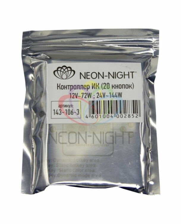Мини контроллер радио RF (20 кнопок) для светодиодныx RGB лент и модулей* DC 12-24 V, 6 A (2 А на каждый канал) 12 V