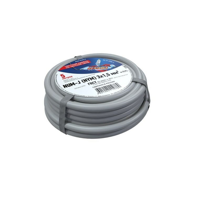 Кабель силовой медный NUM-J 3x1,5 мм?, длина 5 метров, ГОСТ 31996-2012, ТУ 3520-015-38229892-2015 REXANT (кр. 1 бухта)