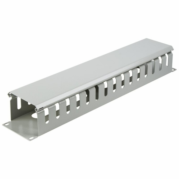 Кабельный горизонтальный органайзер 2U предназначен для удобного и компактного размещения коммутационныx кабелей и шнуров. Рассчитан на установку в телекоммуникационные 19" шкафы и стойки напольного или настенного исполнения.Крышка обеспечивает дополнительное удержание коммутационныx шнуров. Органайзер изготовлен из цельнометаллической панели. Имеет порошково-полиме рное покрытие серого цвета.
