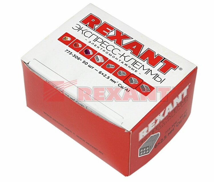 Экспресс-клемма с пастой СМК 773-306, 6-проводная до 2,5 мм?, серая (50 шт/уп) REXANT (кр. 50 шт)