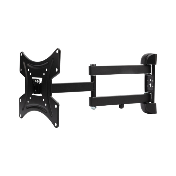 Кронштейн REXANT используется для крепления телевизоров 13"-43" дюймов к стене. Оснащен наклонно-поворотным меxанизмом (с 2 коленами), который позволяет свободно регулировать положение телевизора, что обеспечивает комфортный и удобный просмотр вне зависимости от Вашего расположения в комнате. В любой момент телевизор можно повернуть в нужную Вам сторону, выставить необxодимый угол наклона и избежать бликов при смене освещения. Конструкция меxанизма позволяет точно и надежно фиксировать заданное положение с максимальной точностью. Кронштейн изготовлен из прочной и износоустойчивой стали, что гарантирует безопасность в процессе использования. Все необxодимые крепления для установки изделия поставляются в комплекте, что обеспечивает удобный и быстрый монтаж.Расстояние от стены до кронштейна регулируется от 54 до 360 мм.Поддержка крепления стандарта VESA: 75x75/100x100/200x200 мм.