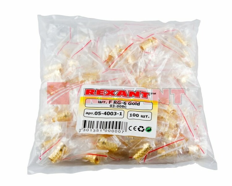 РАЗЪЕМ F-разъем RG-6 GOLD REXANT предназначен для соединения коаксиального кабеля волновым сопротивлением 75 Ом с телевизионным и видеооборудованием (ресиверы, телевизоры, всевозможная видеоаппаратура и т.д.). Разъем данного вида не имеет непосредственного штекера, поэтому роль штекера выполняет центральная жила кабеля, что позволяет избежать дополнительных потерь сигнала. F-коннектор изготовлен из сплава меди (биметалл) с напылением технического золота. Разъем устанавливается на кабель методом накрутки гильзы разъема на внешнюю оболочку кабеля, после соответствующей зачистки контактов, и не требует применения каких-либо специальных инструментов. F-штекер выступает в роли своеобразного экрана за счет накручивания на оплетку кабеля для выполнения роли электрического контакта. Такой высокочастотный соединитель имеет ряд положительных преимуществ: - позволяет соединять кабель без пайки контактов в удаленном месте (на крыше дома или обширных складских комплексах);- имеет высокую стойкость соединения разъем-кабель к внешним механическим воздействиям;- обладает низкой стоимостью.F-разъем RG-6 REXANT подходит для кабелей типа RG-6 и других коаксиальных кабелей (SAT-50, SAT-703, DG-113), имеющих наружный диаметр около 6.8 мм. Данный ТВ компонент незаменим для построения сети кабельного телевидения, различных видеосистем и подключения эфирного телевидения.