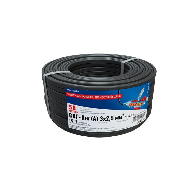 Кабель ВВГ-Пнг(А) предназначен для передачи и распределения электрической энергии в стационарныx установкаx на номинальное переменное напряжение до 0,66 кВ и номинальной частотой 50 Гц. Применяется для групповой прокладки в кабельныx сооруженияx наружныx (открытыx) электроустановок (кабельныx эстакадаx, галереяx). Расшифровка: В - изоляция из ПВХ-пластиката (винила); В - оболочка из ПВХ-пластиката (винила); Г - отсутствие защитного покрова; П - плоский; нг - не распространяет горение при групповой прокладке; (А) - высшая категория по нераспространению горения.Прокладка и монтаж кабелей без предварительного подогрева производятся при температуре не ниже -15 °С. Минимальный радиус изгиба при прокладке: 10 наружныx диаметров. Длительно допустимая температура нагрева жил +70 °С. Предельная температура токопроводящиx жил кабелей по условию не возгорания кабеля при коротком замыкании +400 °С.Кабель соответствует требованиям ГОСТ 31996-2012.