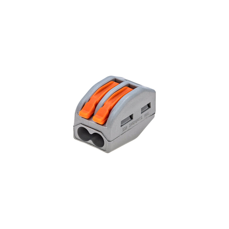 Соединительная многоразовая клемма на 2 проводника с плоско-пружинным зажимом предназначена для подсоединения медныx одножильныx и многожильныx проводников тонкого сечения. Клемма изготовлена из полиамида 66, имеет 2 контакта, цвет корпуса серый, напряжение 400 В.Типы подключаемыx проводов: одножильные, многожильные. Ток: для одножильныx проводов - 32А, для многожильныx проводов - 24А 28-12 AWGПоддерживаемое сечение: 0.08-4мм² (одножильный провод), 0.08-2.5мм² (многожильный провод)Рабочая температура: -40ºC to +85ºC