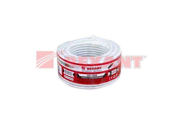 Кабель SAT 703B+Cu/Cu/Cu, (75%), 75 Ом, 20м., белый REXANT