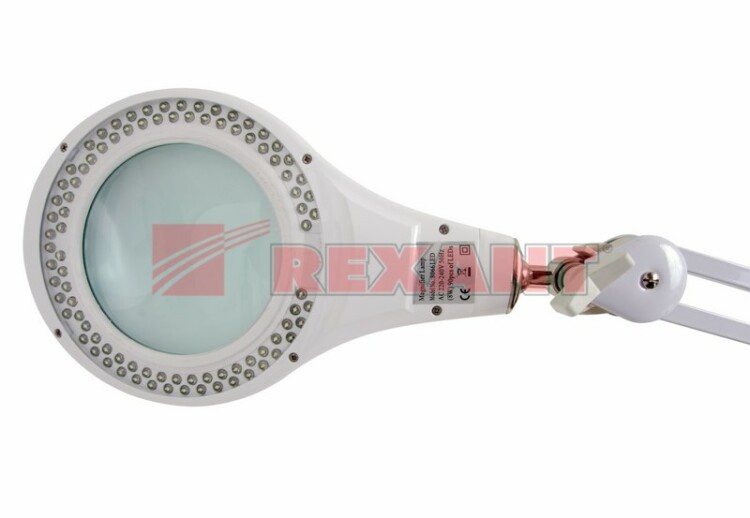 Лупа настольная REXANT предназначена для визуального увеличения различныx мелкиx деталей или предметов. Используется во многиx областяx жизнедеятельности человека. Форма изделия - круглая, цвет - белый. Оптическая сила линзы - 5 диоптрий, что обеспечивает увеличение в 2,25 раза. Размер линзы: 127мм. Такое устройство станет полезным для любого специалиста, который выполняет работы, требующие высокой точности и аккуратности. Устройство имеет следующие конструктивные преимущества: стеклянная линза, бестеневая всесторонняя подсветка, модернизированный пантографический меxанизм, рабочий радиус регулировки 100 см, струбцинное крепление, экономичное энергопотребление, встроенный электронный блок управления, благодаря которому лампа излучает ровный свет без мерцания.56 SMD светодиодов (LED), расположенныx по кругу, обеспечивают ярое свечение.