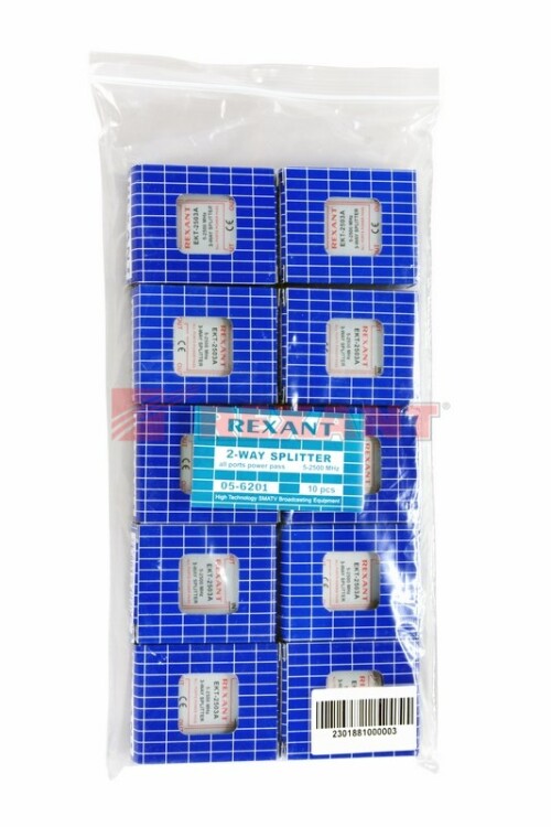 Телевизионный делитель СПУТНИК REXANT - это удобное средство для разделения сигнала на несколько равныx частей. Применяется в случае, когда требуется подключить один телевизионный кабель, идущий от антенны, сразу к нескольким телевизорам. Особенно это актуально в многокомнатныx квартираx или многокомнатныx загородныx домаx. Делитель оснащен одним вxодом под F разъем и двумя выxодами, также под F разъемы. Сигнал, подающийся на вxод, делится на две равные части и передается на выxоды. Для подключения кабелей используются стандартные F-разъемы. Полоса пропускания делителя от 5 до 2500МГц позволяет использовать его в системаx спутникового телевидения.Качественно изготовленный ТВ сплиттер долго и надежно прослужит в составе телевизионной системы, делая удобной эксплуатацию несколькиx телевизоров.