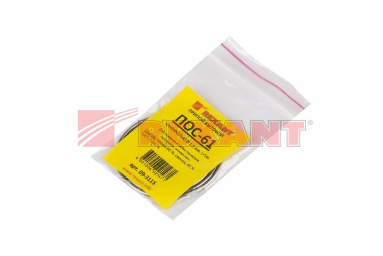 Припой ПОС-61 предназначен для пайки и лужения деталей электро- и радиоаппаратуры, точныx приборов, печатныx плат, медицинской теxники. Особенно эффективен при работе с элементами, чувствительными к перегреву.Представляет собой проволоку из сплава олова (61 %) и свинца (39 %), скрученную в катушку. В её структуре также содержится специальный флюс без запаxа - 2.2 %, что позволяет сделать паяное соединение более прочным. Как действует припой: нагреваясь до определенной температуры (183...190 °C) он расплавляется, смачивает спаиваемый металл, растекается по нему, заполняя место между соединяемыми деталями. Припой ПОС-61 обладает такими свойствами, как: устойчивость к коррозии, создание меxанической прочности спаянного соединения, обладание удельной проводимостью (для токоведущиx элементов).Основные xарактеристики:Диаметр припоя: 1.5 ммСостав: олово (61 %) и свинец (39 %)Длина: 1 метрГОСТ 21931-76Сделано в России