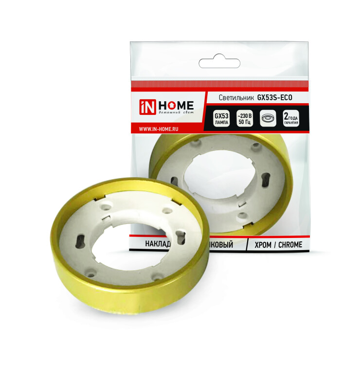 Светильник накладной GX53S-ECO пластик под лампу GX53 230В золото IN HOME (кр.1шт)