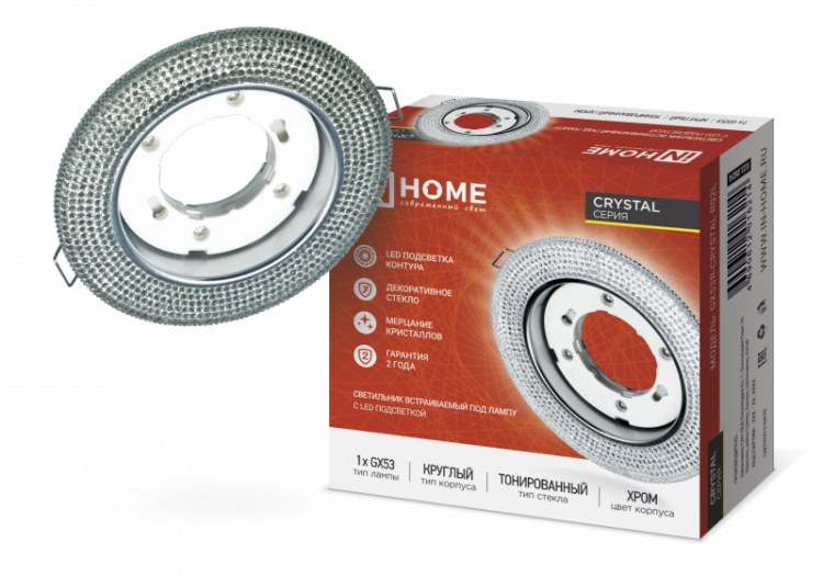 Светильник встраиваемый GX53R-crystal R02L с подсветкой 4К под лампу GX53 Тонированный/Хром IN HOME (кр. 1шт)