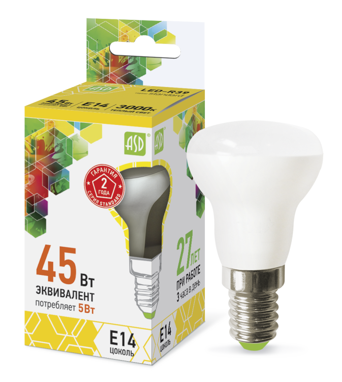 Лампа светодиодная LED-R39-standard 5Вт 230В Е14 3000К 450Лм ASD (кр.10шт)