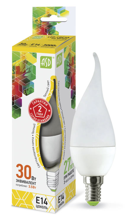 Лампа светодиодная LED-СВЕЧА НА ВЕТРУ-standard 3.5Вт 230В Е14 3000К 320Лм ASD (кр.10шт)
