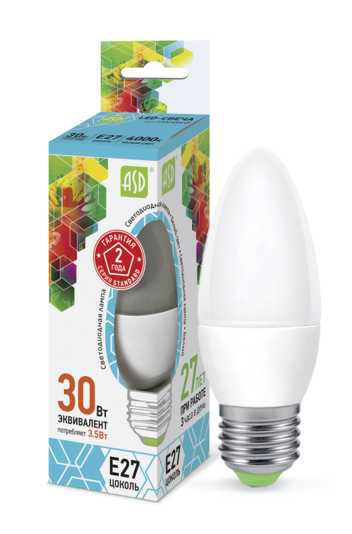 Лампа светодиодная LED-СВЕЧА-standard 3.5Вт 230В Е27 4000К 320Лм ASD (кр.100шт)