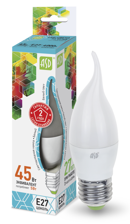 Лампа светодиодная LED-СВЕЧА НА ВЕТРУ-standard 5Вт 230В Е27 4000К 450Лм ASD (кр.10шт)