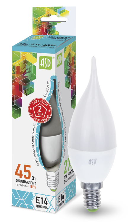 Лампа светодиодная LED-СВЕЧА НА ВЕТРУ-standard 5Вт 230В Е14 4000К 450Лм ASD (кр.10шт)