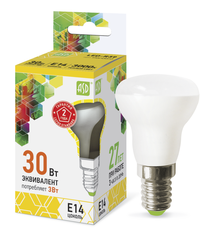 Лампа светодиодная LED-R39-standard 3Вт 230В Е14 3000К 270Лм ASD (кр.100шт)