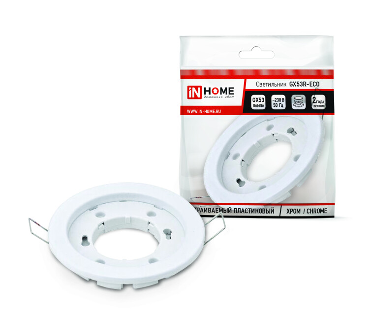 Светильник встраиваемый GX53R-ECO пластик под лампу GX53 230В белый IN HOME (кр.1шт)