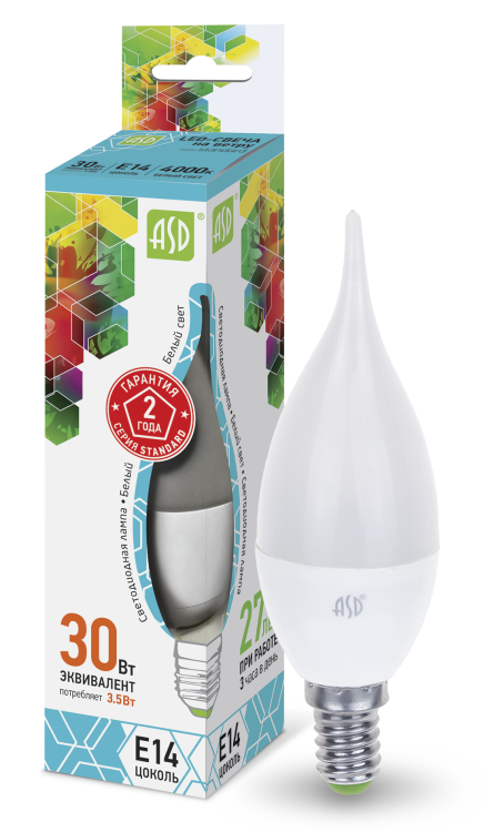 Матовая колба в форме свечи на ветру. Элегантная форма лампы подчеркнет красоту Вашей люстры, а различные температуры свечения позволяют создать комфортную атмосферу.