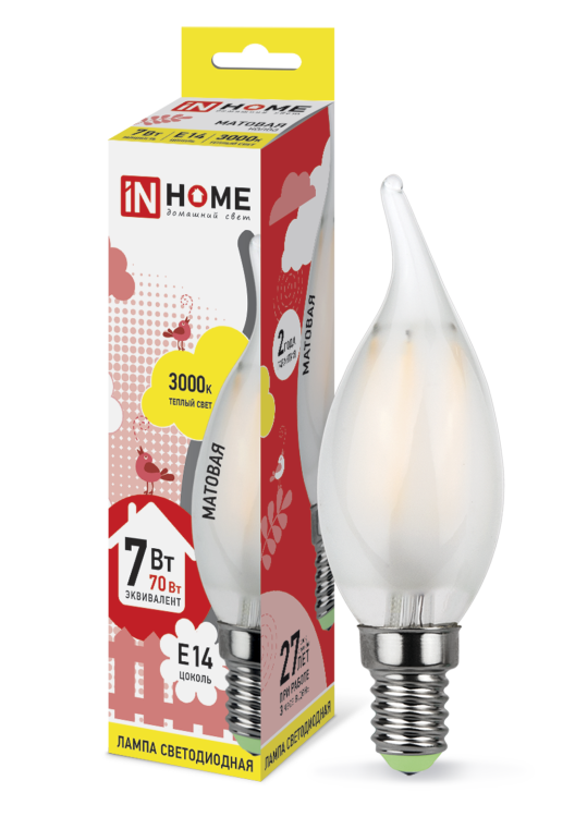 Лампа светодиодная LED-СВЕЧА НА ВЕТРУ-deco 7Вт 230В Е14 3000К 630Лм матовая IN HOME (кр.50шт)