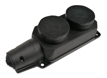 Розетка двойная с заземлением каучук с заглушками 16А IP44 черная 9322 IN HOME (кр. 10шт)