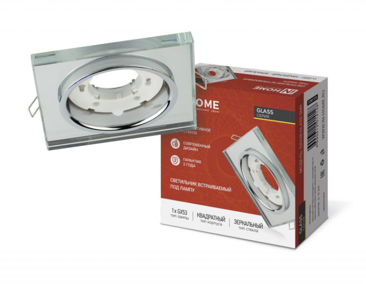 Светильник встраиваемый GX53R-glass SMR под лампу GX53 КВАДРАТ зеркальный IN HOME (кр. 1шт)
