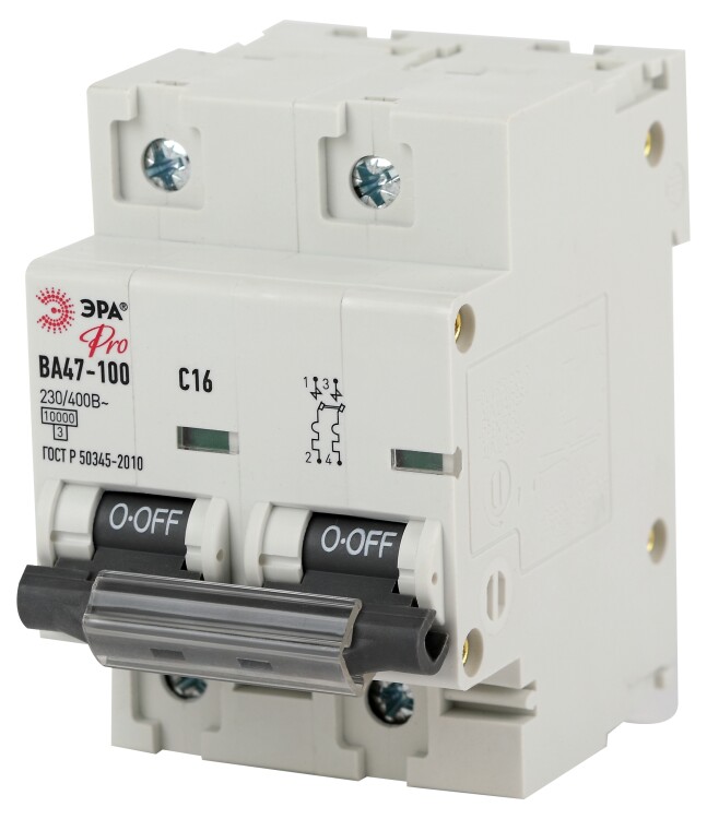 Автоматический выключатель ЭРА PRO NO-902-272 ВА47-100 2Р 16А кривая С 10 кА(кр.1шт)