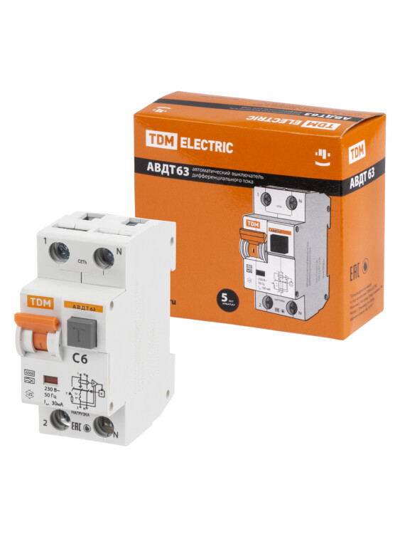 Назначение:br/Проведение тока в нормальном режиме. Отключение тока при протекании токов утечки на землю.Отключение тока при прикосновении человека к токоведущим частям электроустановок или протекании дифференциального (утечки) тока на землю.br/Применение:br/Розеточные группы ванных и душевых помещений.Цепи освещения подвалов и гаражей.Групповые линии, питающие розетки наружной установки.br/Преимущества:br/Наличие двойного одновременного подключения. Шина и проводник значительно расширяет диапазон возможных схемных решений.Аппарат занимает два стандартных модуля в щитке (36 мм).Отключающая способность 6 000 А.Цена гораздо ниже, чем при покупке УЗО и автоматического выключателя за счет совмещения функций в одном изделии.br/Материалы:br/Корпус и детали аппарата выполнены из пластика, не поддерживающего горение.br/Упаковка:br/Групповая упаковка АВДТ32 1+N по 6 шт. АВДТ63 1+N по 6 шт. АВДТ63 3+N по 3 шт. Руководство по эксплуатации - 1 шт. на групповую упаковку Паспорт - 1 шт. на групповую упаковкуbr/