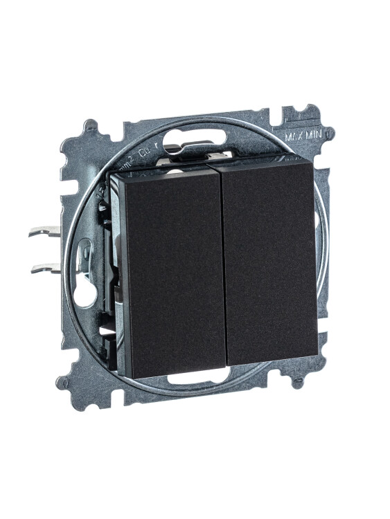 Переключатель 2-клавишный, Levit, антрацит/дымчатый чёрный (кр.1шт)