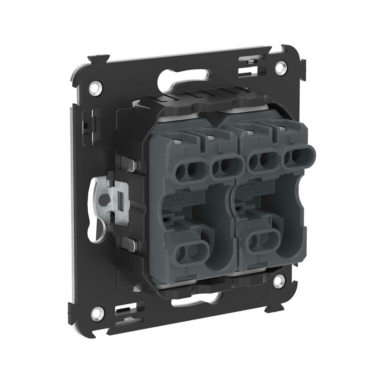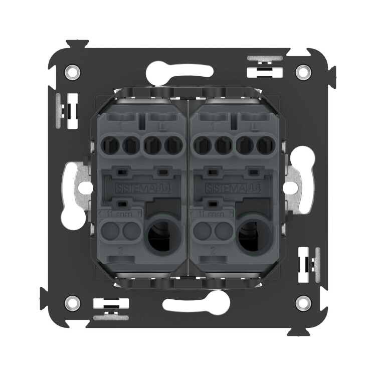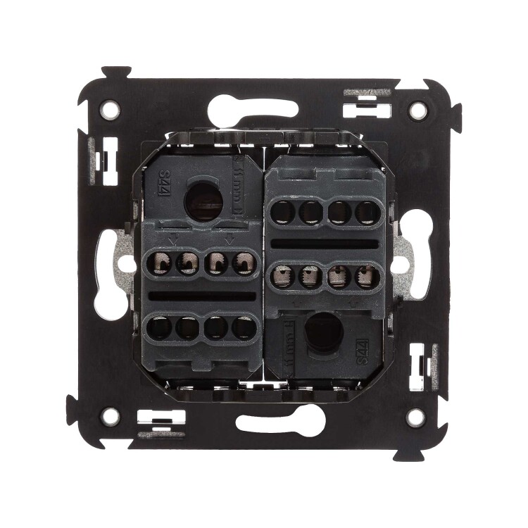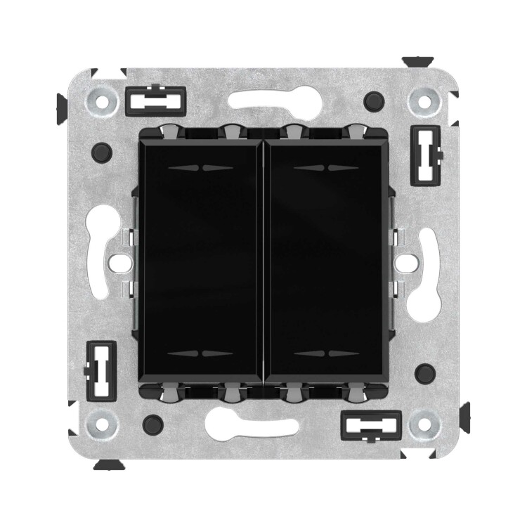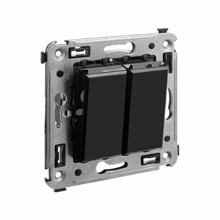 Инвертор двухклавишный. Назначение: для монтажа в подрозеточные коробки глубиной не менее 45 мм (код 59301). Используется для включения/выключения освещения с трех и более мест. Характеристики: 2 модуля, диаметр отверстий для ввода кабелей – 3 мм (по 2 отверстия на одну клемму); винтовые зажимы; фиксация в подрозеточную коробку при помощи саморезов; шаблон для зачистки кабеля – 11 мм; номинальный ток – 16 A; номинальное напряжение – 230 В. Цвет: "Черный квадрат".