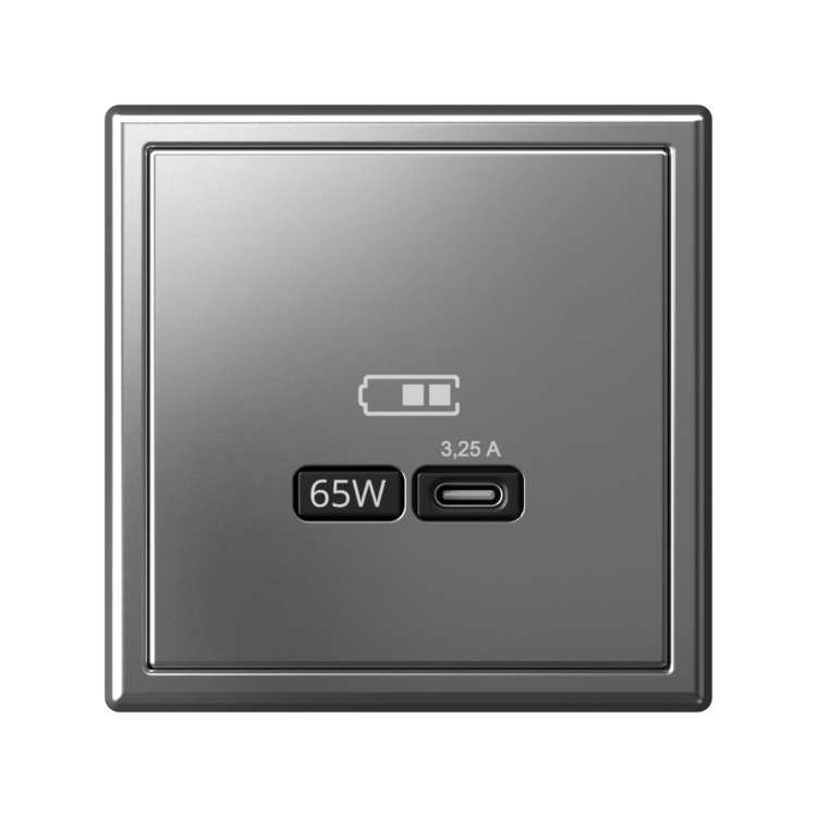 Розетка Systeme Electric серии ArtGallery в цвете сталь USB с разъемом типа C высокоскоростная.