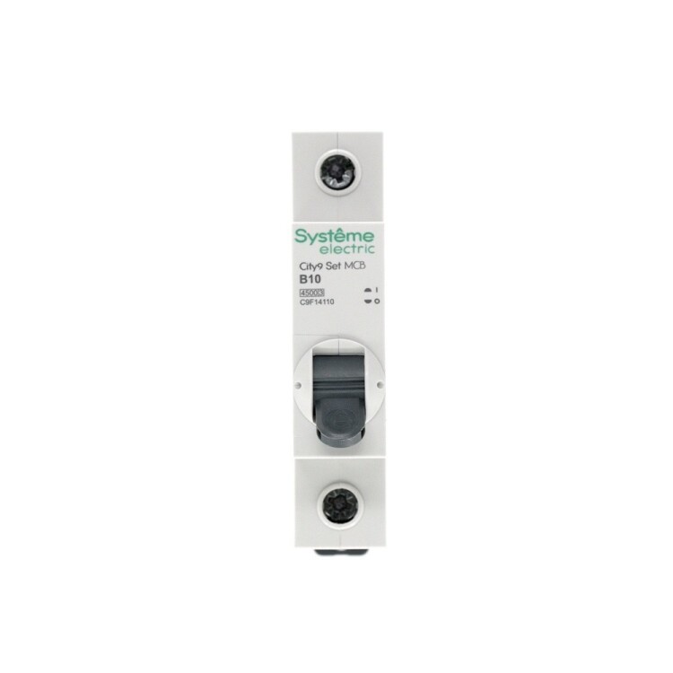 Автоматический выключатель серии City9 Set Systeme Electric, 1-полюсный, номинальный ток 10 А, характеристика B, Icn = 4.5 кА. Применяется в электрических сетях напряжением 230 В. Предназначен для защиты от перегрузок и токов короткого замыкания. Оснащен механизмом «мгновенной коммутации». Ударопрочный корпус из специального пластика с 6 металлическими заклепками. Безопасные клеммы исключают попадание кабелей в заклеммное пространство (ранее Schneider Electric Easy9 EZ9F14110).