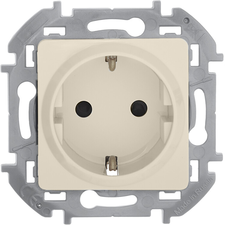 Розетка с заземлением, с защитными шторками для скрытого монтажа Legrand/Daccord Inspiria, цвет "Слоновая кость", максимальный ток 16А, напряжение ~250В, максимальная мощность 3680Вт, винтовые зажимы.