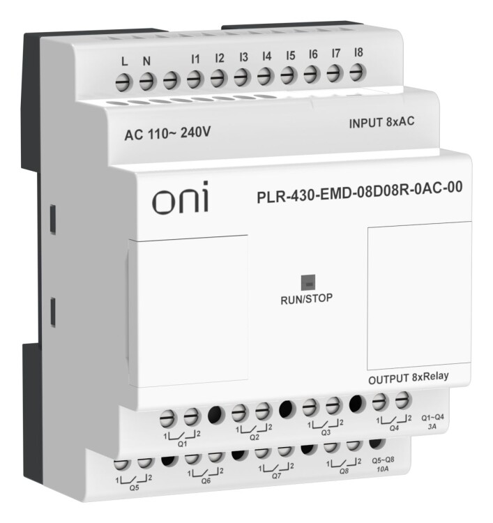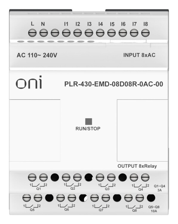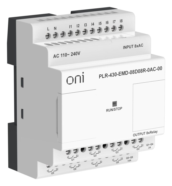 Модуль расширения входов-выходов для ПЛК 430 ONI. 8 дискретных входов и 8 релейных выходов. Напряжение питания 220В AC.