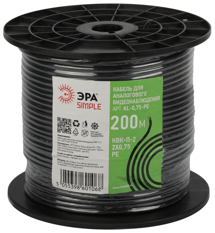 Кабель КВК-П-2 +2x0,75 мм² ЭРА применяется при подключении систем аналогового видеонаблюдения. Кабель предназначен для передачи телевизионного сигнала с одновременным подключением питания и/или передачи сигналов управления на расстояние, не превышающее 150 м. Для прокладки вне помещений устойчив к воздействию ультрафиолетового излучения.