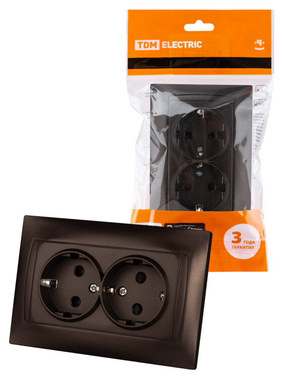Розетка двойная 2П+З 16А 250В с защ. шт. шоколад "Лама" TDM (кр.6шт)