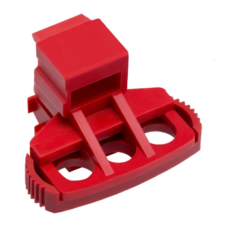 Устройство блокировки положения "Отключено" PLD для выключателей типа MDE. Обеспечивает безопасность оборудования и персонала при проведении регламентных или пусконаладочных работ на объектах путем предотвращения включения вручную автоматического выключателя. Блокировка автоматического выключателя в выключенном состоянии гарантирует разъединение цепи в соответствии со стандартом МЭК 60947-2 и допускает установку 1–3 навесных замков диаметром дужки 5–8 мм (не входят в комплект поставки).